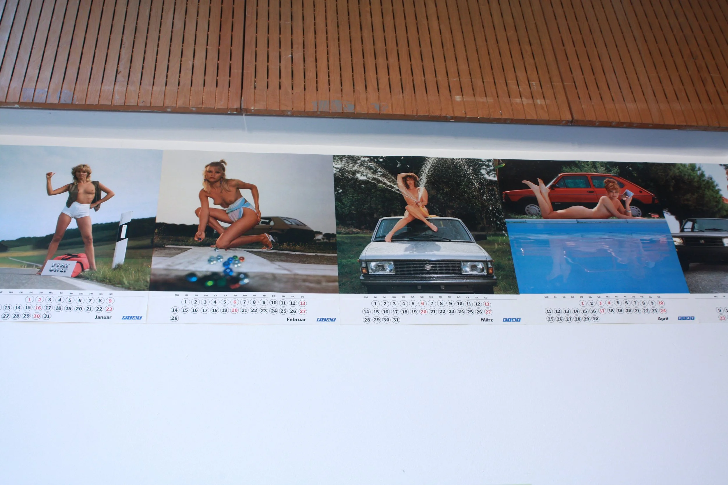 Bei Daddy ́s Believe werden einzelne Pin-Up Kalenderblätter einer Automobilmarke lose in Reihe gehängt. Das sonst für die Männerwelt hergestellte und verwendete pornografische Material wird hier unzensiert in einem Wand-Fries präsentiert.
